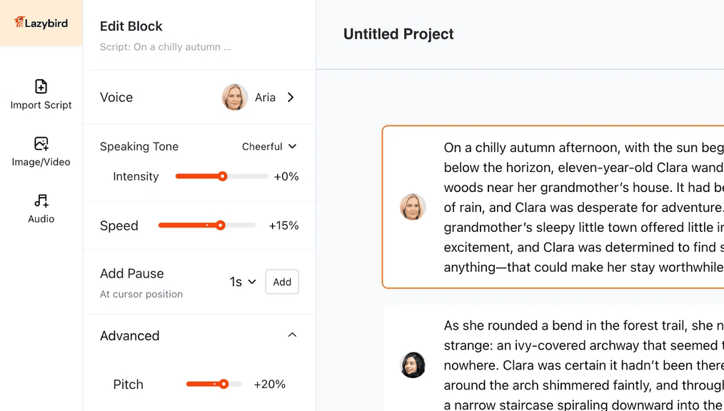 • Unlimited voice cloning lets you experiment freely with different styles, tones, and characters.