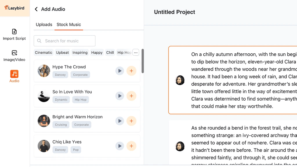 • Choose from thousands of stock images, videos, and audio files to level up your video content